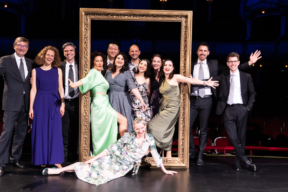 Benefiz auf der Bühne 2023 - „Alles Walzer, ein Abend im Dreivierteltakt“. Der letzte Benefizabend mit Intendantin Nora Schmid (2. v. l.), hier gemeinsam mit den Künstlerinnen und Künstlern, die den Abend zu einem uneingeschränkten Erfolg gemacht haben